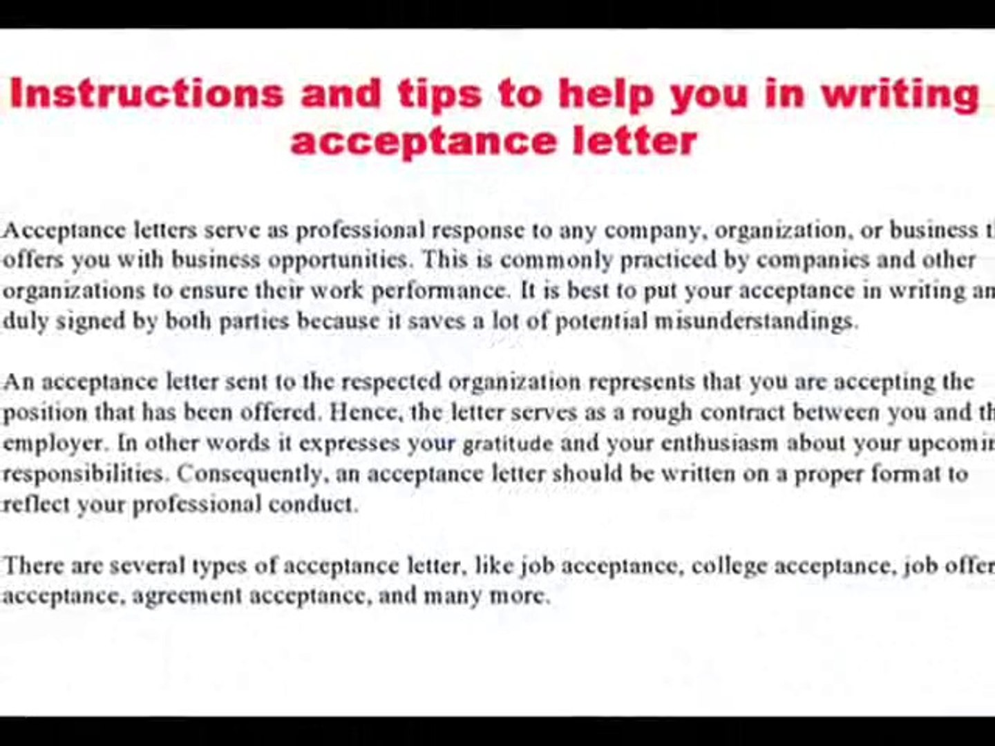 Acceptance Letter For A Job Position - Free Letter Sample Download