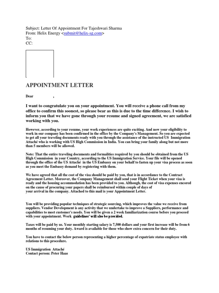 Appointment Letter Travel Visa Employment