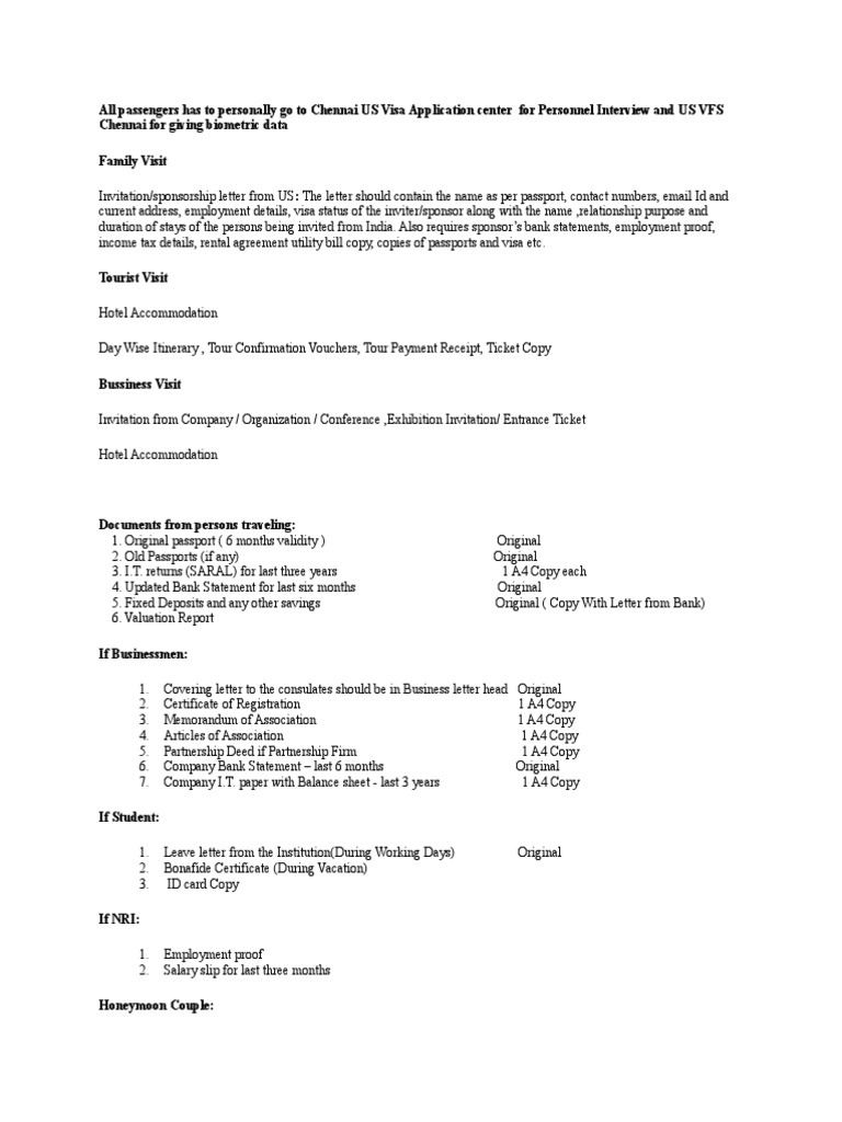 Us Visa Requirements Documents Required For Us Visa Application